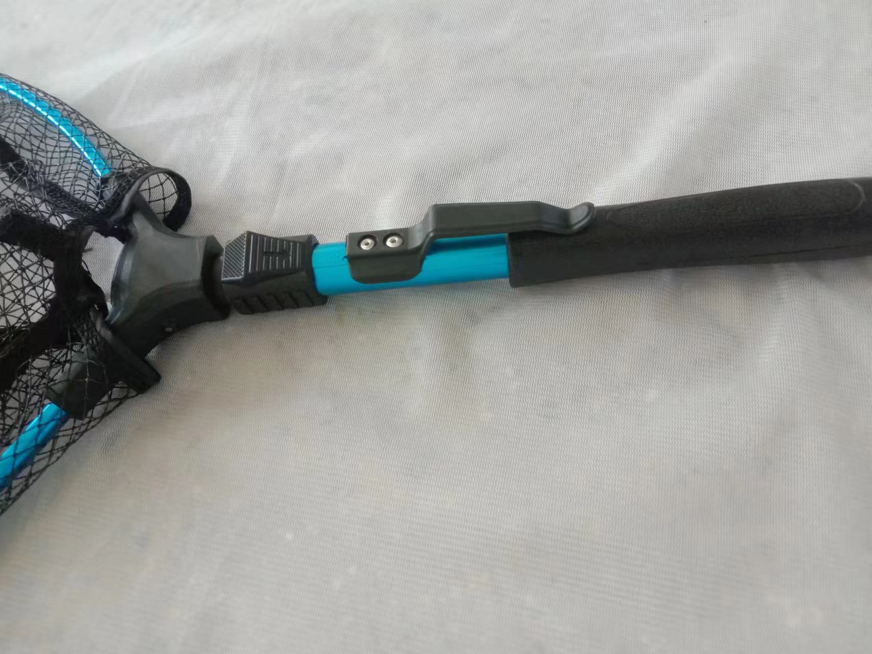 小巧折叠抄网,挂胶网,铝材网框和杆,坚固耐用,携带方便,带弹力绳,适合河钓等多种野外环境